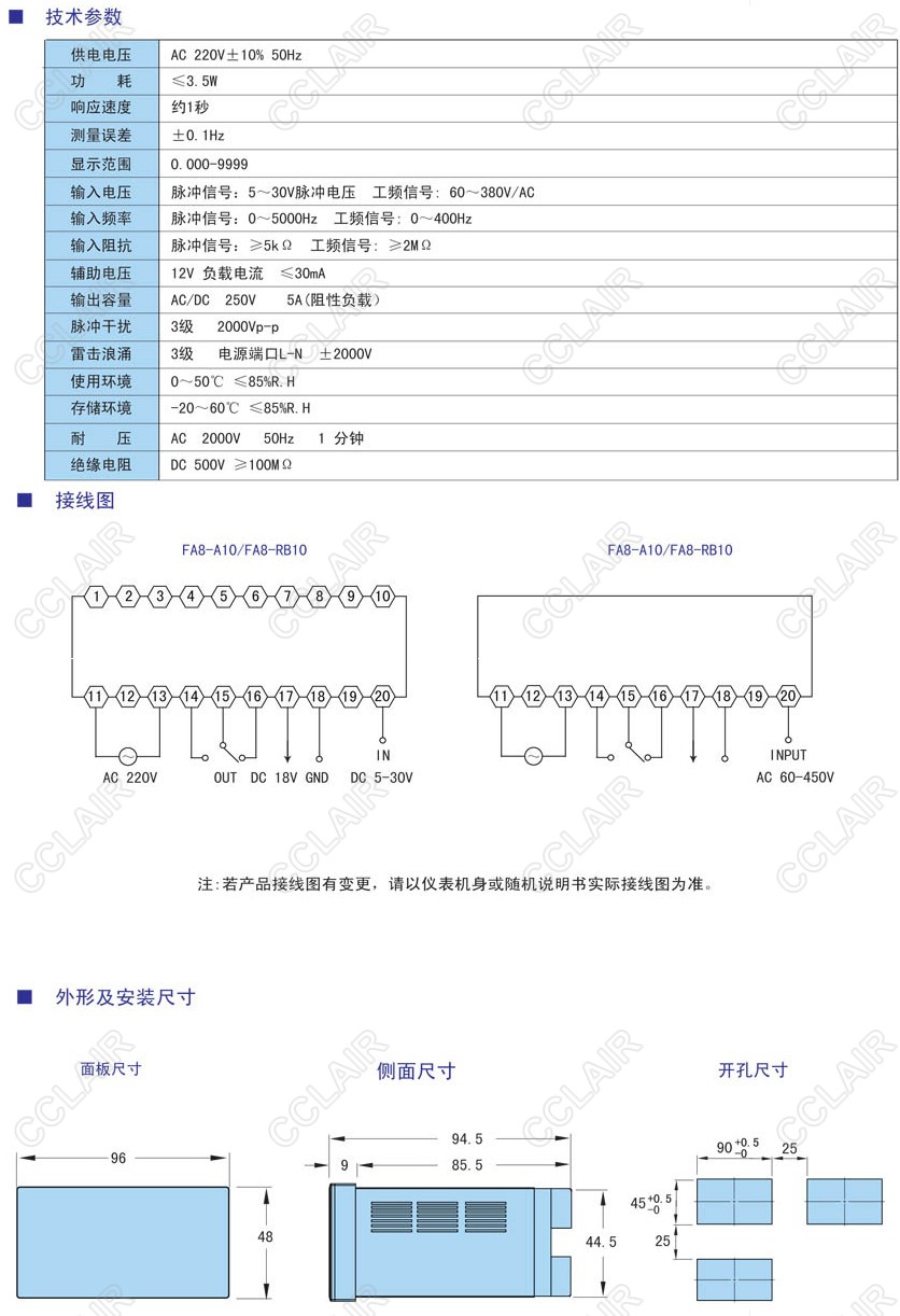 FA8-A10,FA8-RB10,FA8-A10H,FA8-RB10H,FA8頻率/轉速表