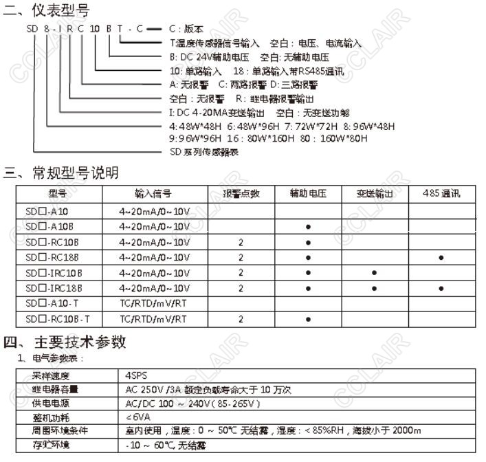 SD4-A10,SD4-A10B,SD4-RC10B,SD4-RC18B,SD4-IRC10B,SD傳感器顯示專用表