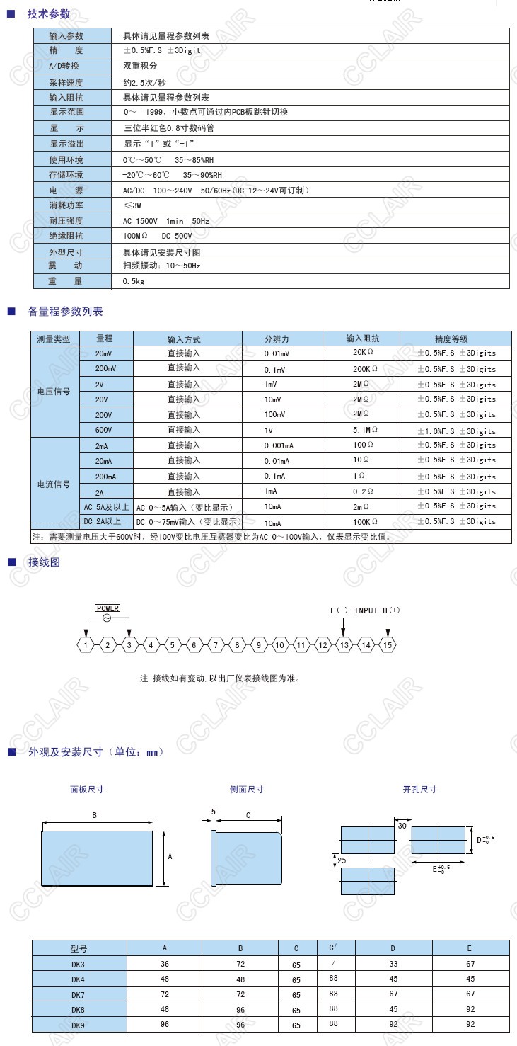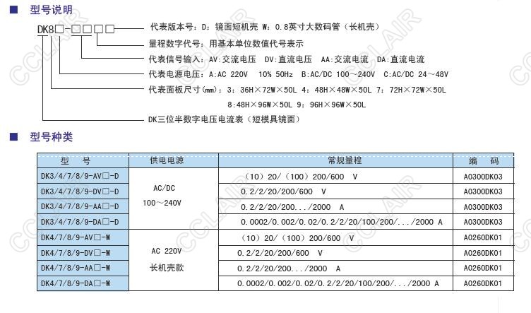 DK3-AV20-D,DK3-AV200-D,DK3-AV600-D,DK4-AV20-D,DK4-AV200-D,DK三位半電壓電流表