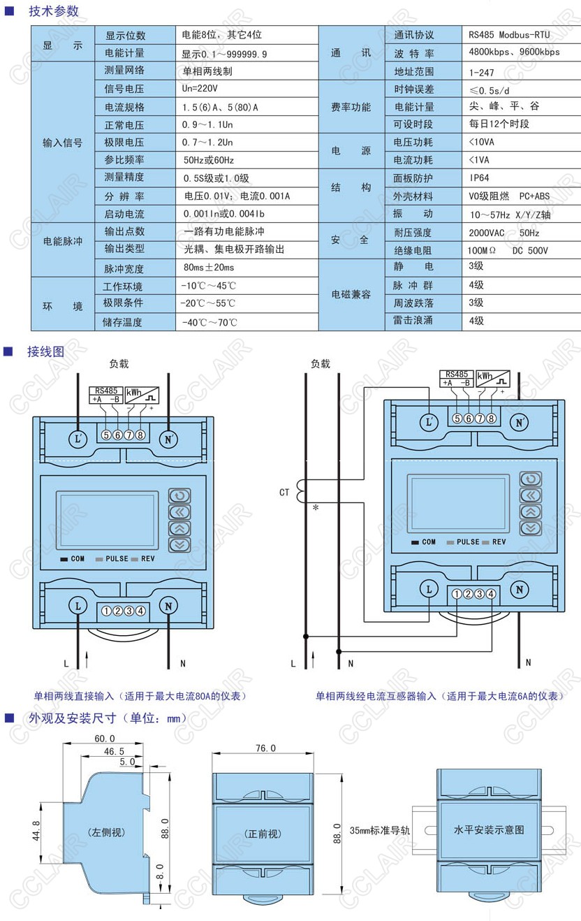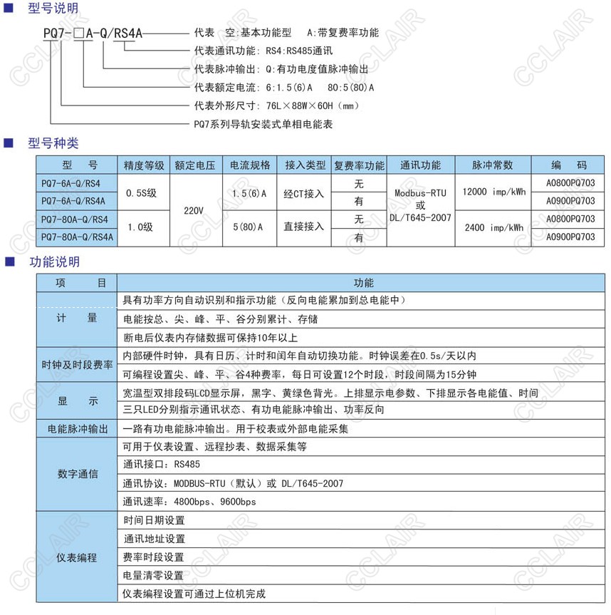 PQ7-6A-Q/RS4,PQ7-6A-Q/RS4A,PQ7-80A-Q/RS4,PQ7-80A-Q/RS4A,PQ7導軌安裝式單相電能表