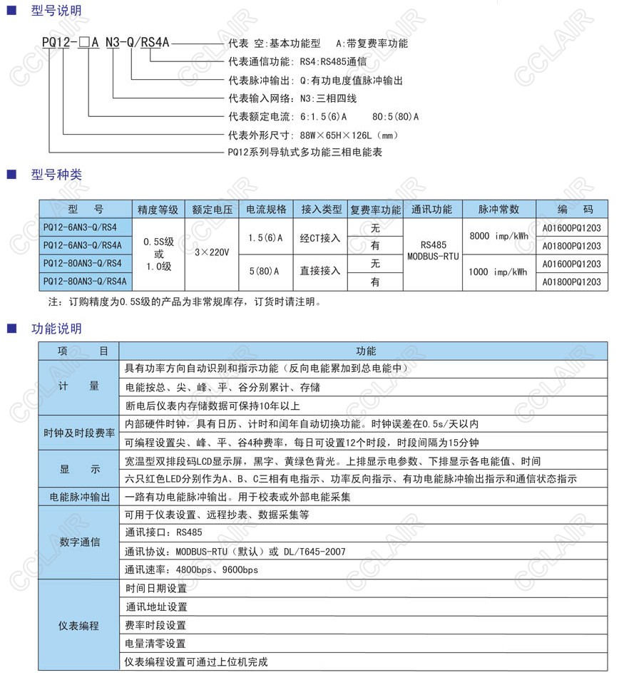 PQ12-6AN3-Q/RS4,PQ12-6AN3-Q/RS4A,PQ12-80AN3-Q/RS4,PQ12-80AN3-Q/RS4A,PQ12導(dǎo)軌安裝式三相電能表