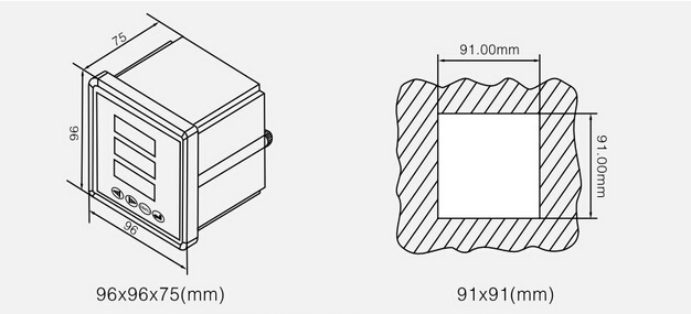 HD284U-9X4數(shù)顯三相電壓表 產(chǎn)品概述 96方形 外形:96*96mm 開孔:91*91mm