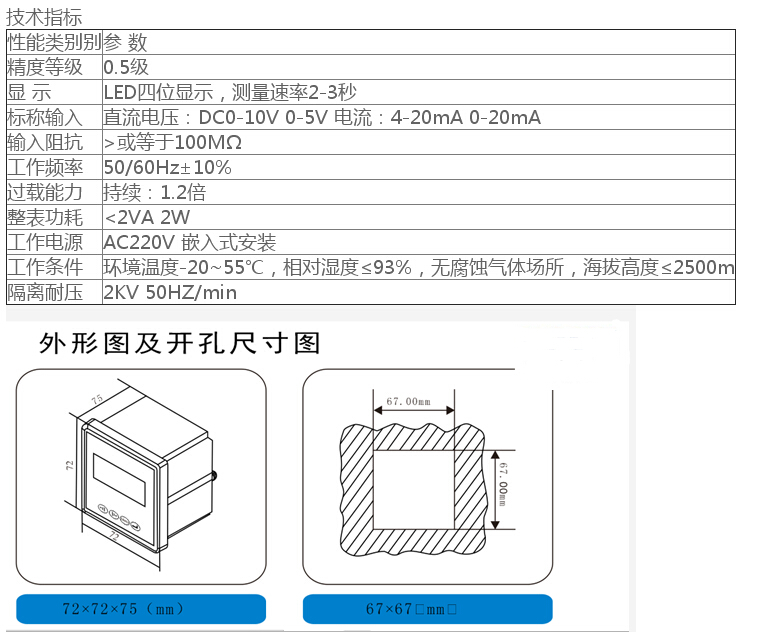 規(guī)格:DC4-20mA信號,顯示50HZ