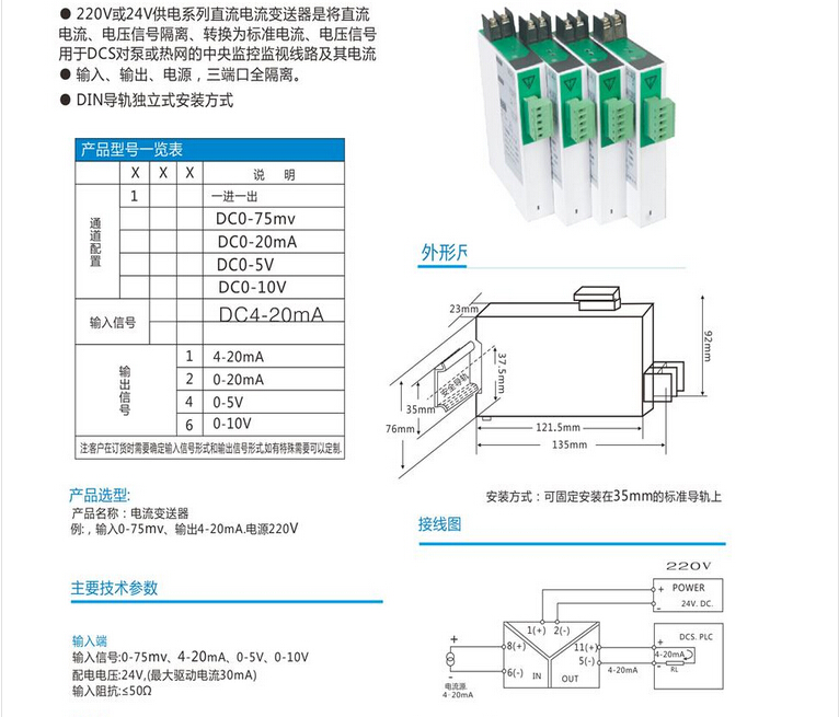 JA9775I電流變送器 輸入0-75mv、4-20mA、0-10V等標(biāo)準(zhǔn)信號(hào)