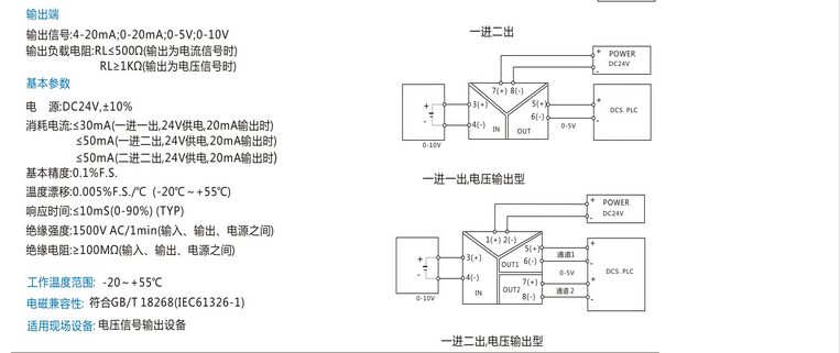 信號隔離器輸入范圍:4-20mA、0-10V、0-20mA、0-5V、0-75mV等用戶特定規(guī)格