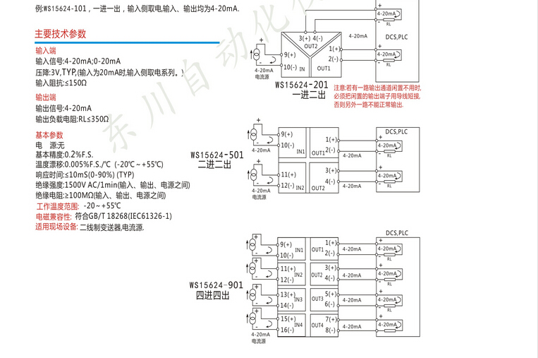 輸入輸出方式:一入一出、二入二出、三入三出、四入四出輸入 輸出范圍:4-20mA模擬量信號.