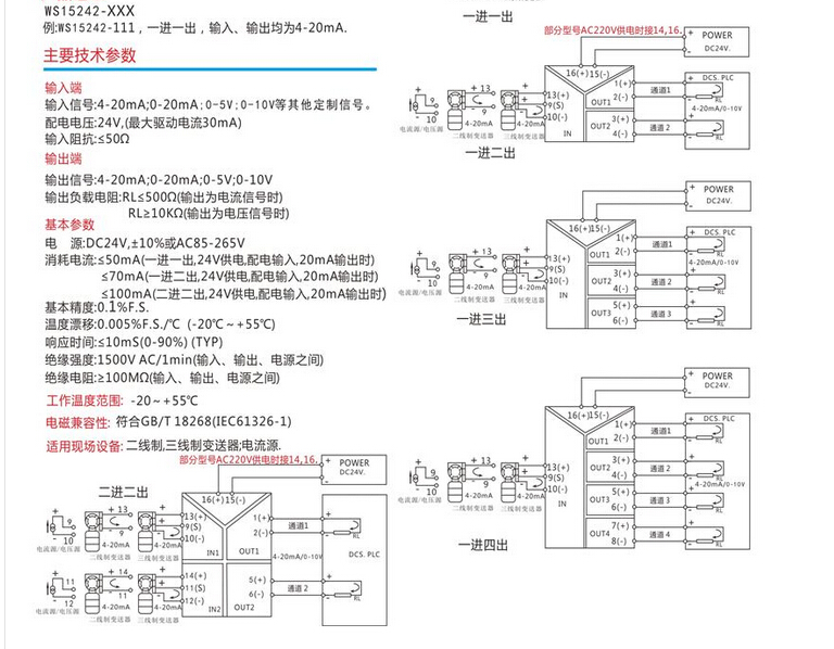 WS15242信號隔離器,信號分配器,全隔離輸出信號分配器 安全隔離柵,信號隔離器模塊