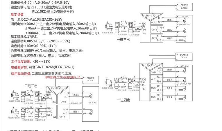 全隔離信號調(diào)理器輸入輸出方式:一進一出、一進二出、一入三出、一入四出、二入二出