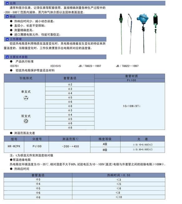HR-WZ,HR-WZPK,鎧裝熱電阻通常和顯示儀表、記錄儀表等配套使用。直接精確測(cè)量各種生產(chǎn)過程中的-200~500℃范圍內(nèi)液體、蒸汽和氣體介質(zhì)以及固體表面溫度。