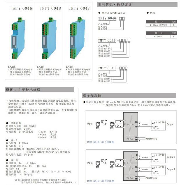 TMTY6046,TMTY6048,TMTY6047 電流信號輸入配電隔離器(支持輸出回路供電)