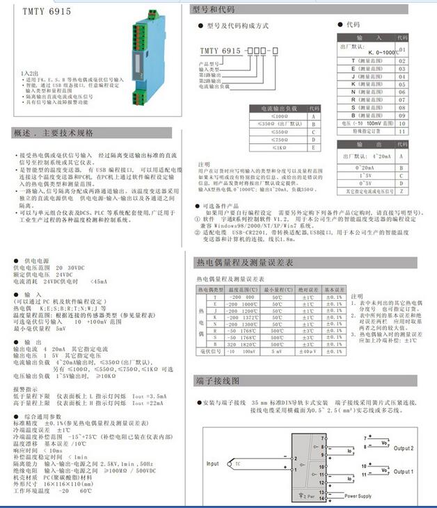 TMTY6915,TMTY6915-01A,TMTY6915-01B,智能型熱電偶輸入隔離變送器(一入二出)