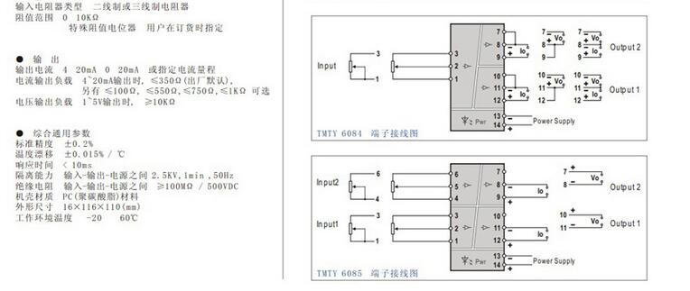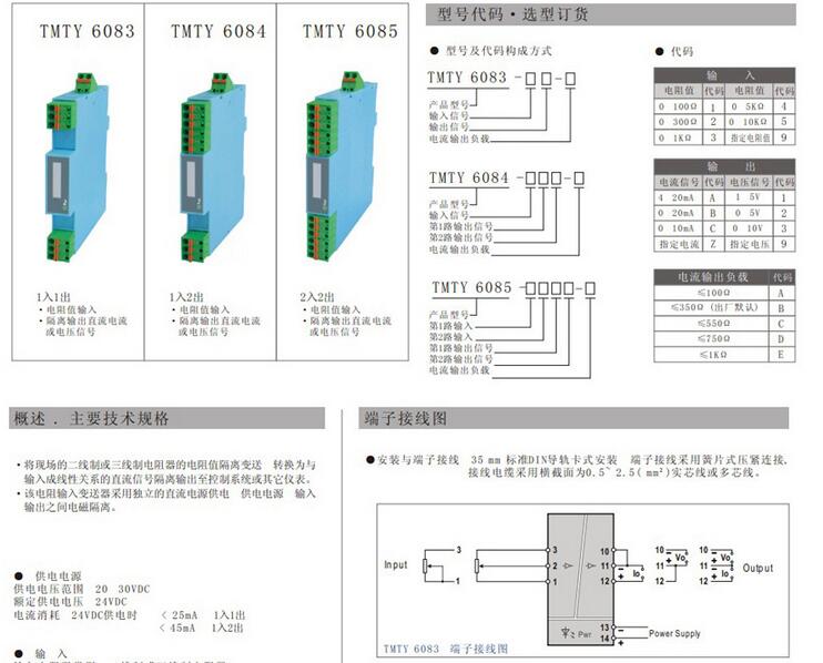 TMTY6083/6084/6085 電阻信號(hào)輸入隔離變送器