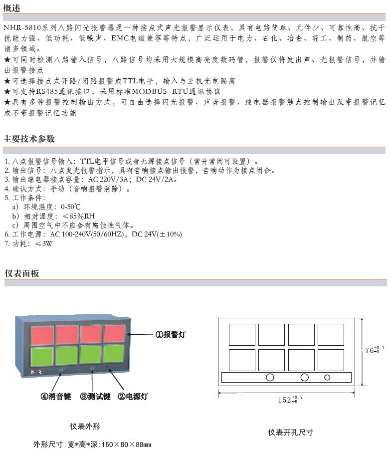 NHR-5810,八路閃光報警器
