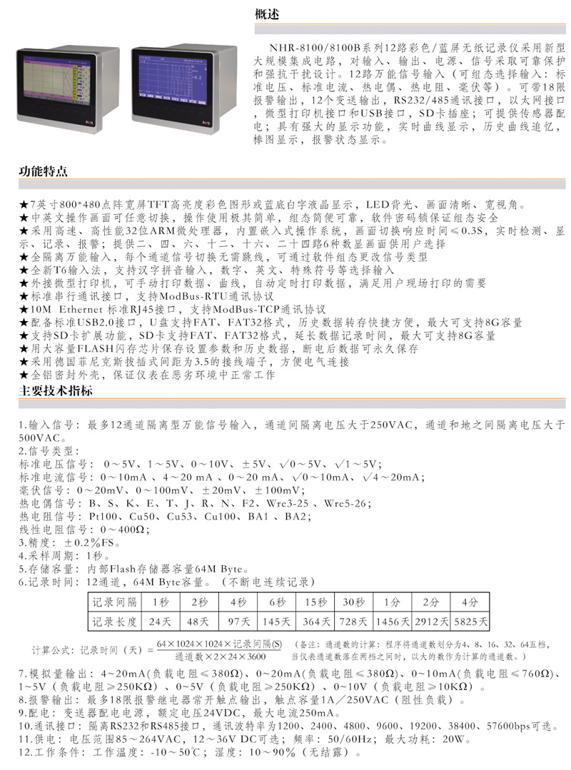 NHR-8100/8100B,12路彩屏/藍(lán)屏無(wú)紙記錄儀