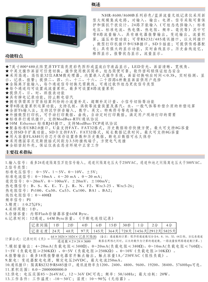 NHR-8600/8600B,8路彩色/藍(lán)屏流量無(wú)紙記錄儀