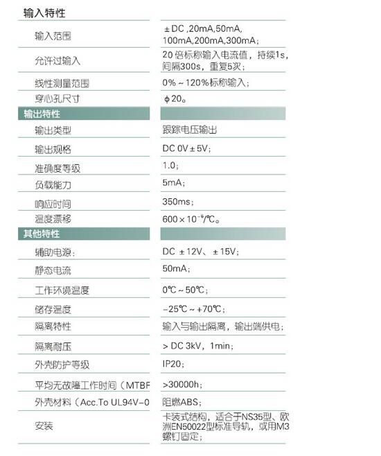 輸入規(guī)格:±DC 20MA....300MA范圍可選