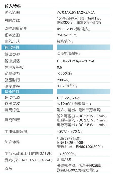 輸入規(guī)格:AC 0-5A范圍可選