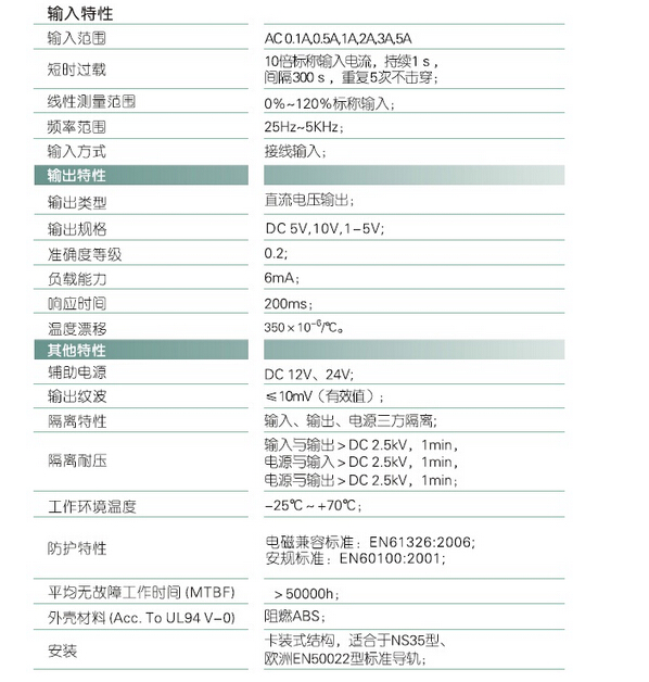 輸入規(guī)格:AC 0-5A范圍可選