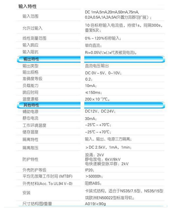輸入規(guī)格:DC 1mA~5A范圍可選,外置分流器可擴(kuò)展