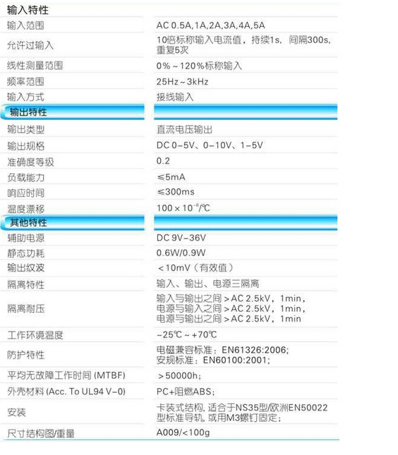 輸入規(guī)格:AC 0-5A范圍可選