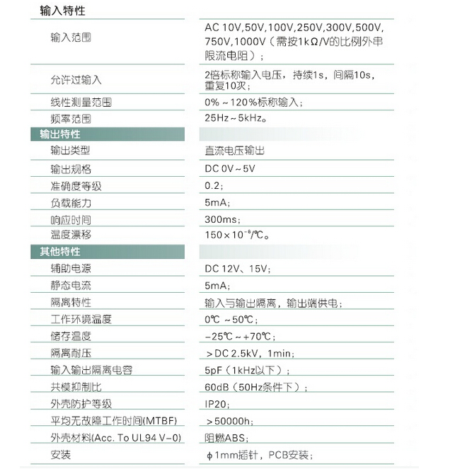 輸入規(guī)格:AC 10V-1000V范圍可選(需按1kΩ/V的比例外串限流電阻)