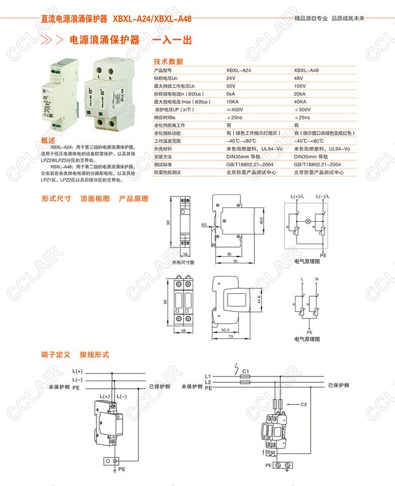 XBXL-A24,XBXL-AXBXL-A48,直流電源浪涌保護器(一入一出)
