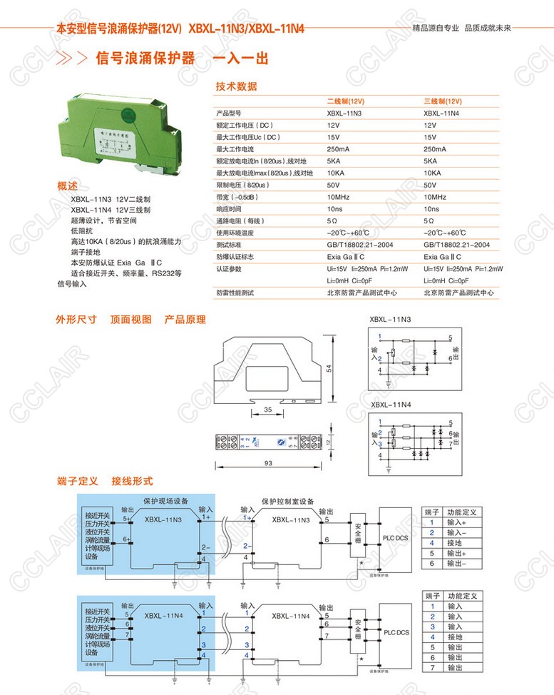 XBXL-11N3,XBXL-11N4,本安型信號(hào)浪涌保護(hù)器(12V)(一入一出)