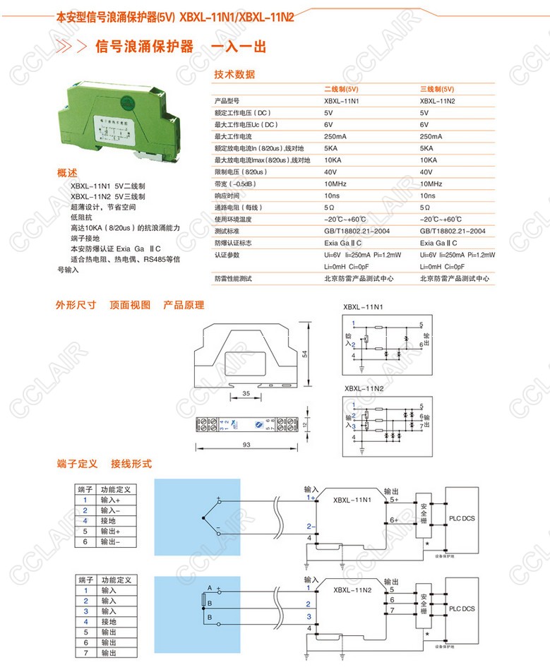 XBXL-11N1,XBXL-11N2,本安型信號(hào)浪涌保護(hù)器(5V)(一入一出)