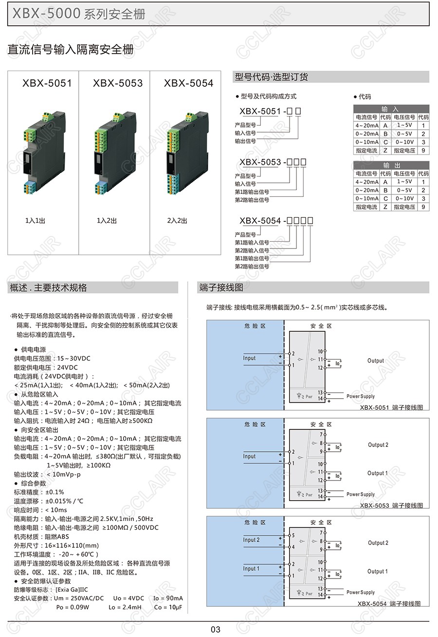 XBX-5051,XBX-5053-C3C3,XBX-5053-Z9Z9,直流信號輸入隔離安全柵(一入一出、一入二出、二入二出)