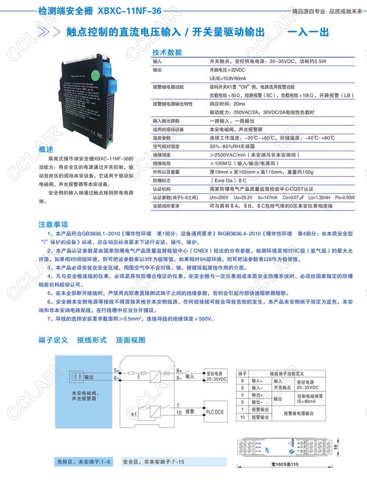 XBXC-11NF-36,操作端安全柵開關量驅動輸出(二入二出)