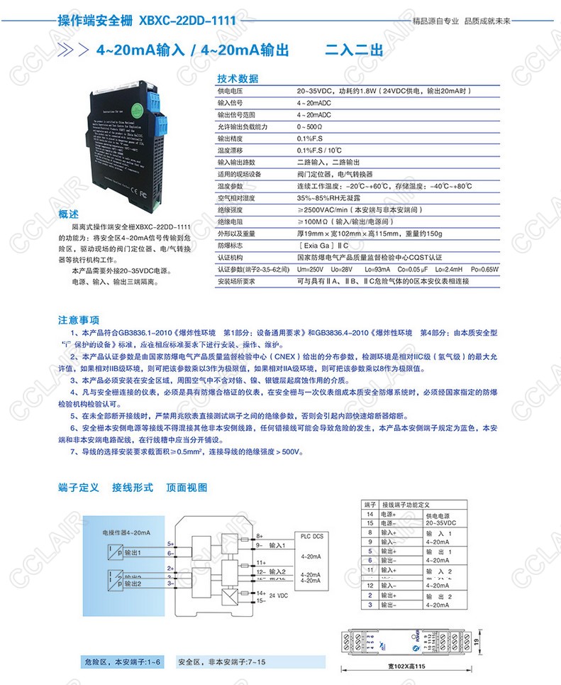 XBXC-22DD-1111操作端安全柵模擬量驅(qū)動(dòng)輸出(二入二出)