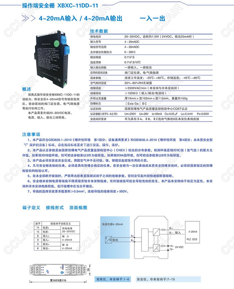 XBXC-11DD-11操作端安全柵模擬量驅(qū)動輸出(一入一出)