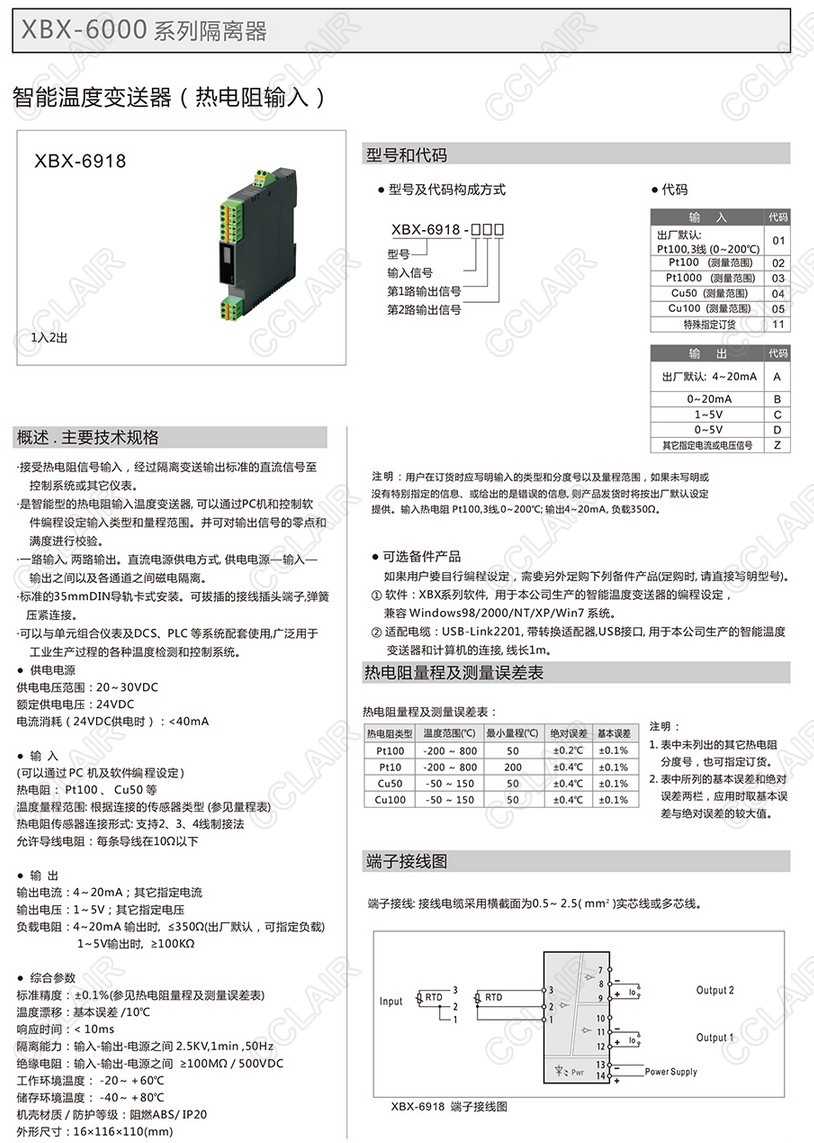 XBX-6918,XBX-6918-01A,XBX-6918-02A,XBX-691803A,智能溫度變送器(熱電阻輸入)(一入二出)