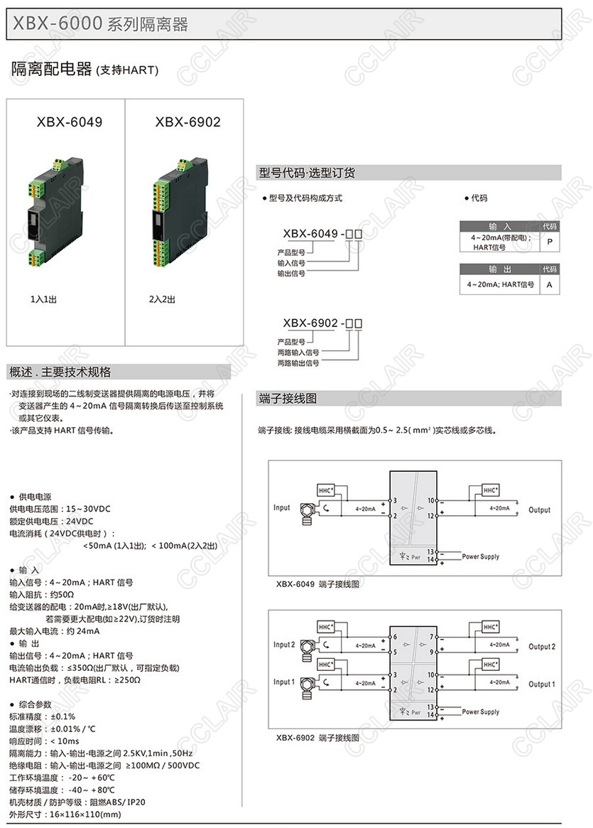 ,XBX-6902,XBX-6049PA,XBX-6902PA,隔離配電器(支持HART)(一入一出、二入二出)
