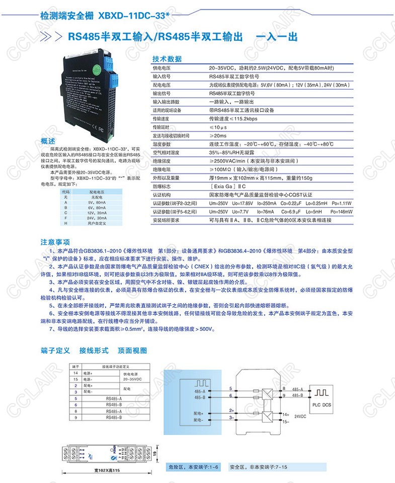 XBXD-11DC-33*RS485半雙工輸入/RS485半雙工輸出(一入一出)