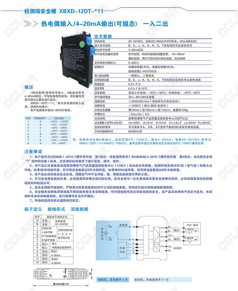 XBXD-12DT-11熱電偶輸入/4-20mA輸出(可組態(tài))(一入二出)