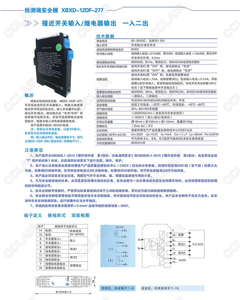 XBXD-12DF-277,XBXD-12DF-299接近開關輸入/繼電器輸出(一入二出)