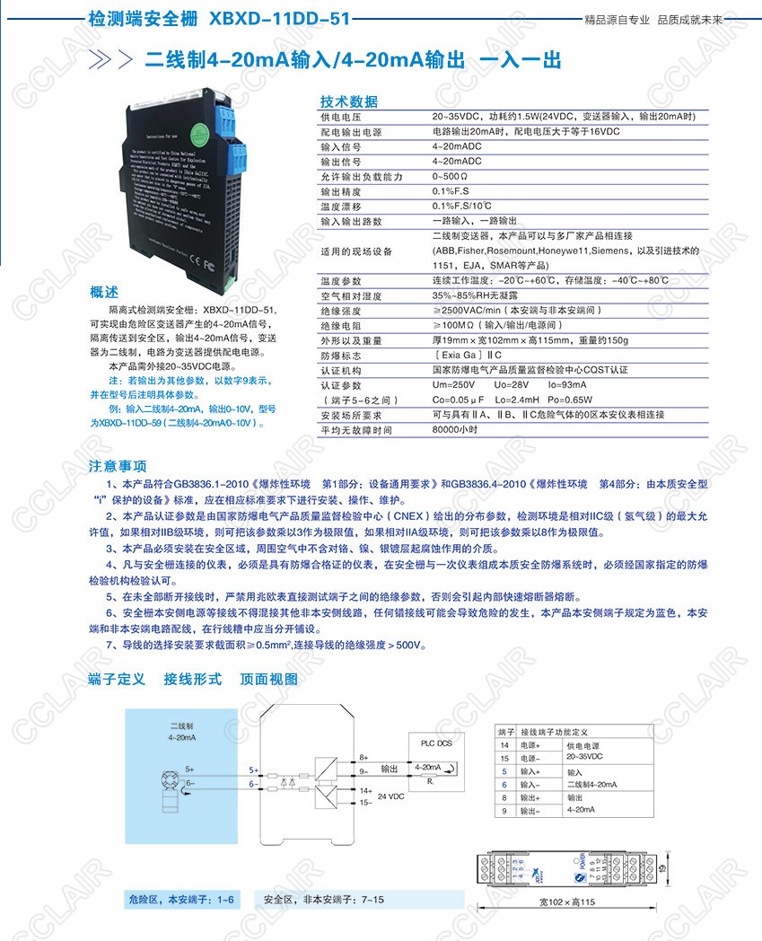 XBXD-11DD-51,XBXD-11DD-59 二線制4-20mA輸入/4-20mA輸出(一入一出)