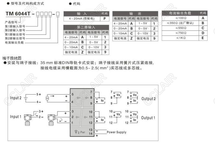 第一通道:4~20mA(帶配電) 輸入,直流信號輸出。