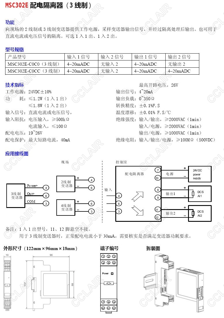 MSC302E-COCO,MSC302E-COCC,配電隔離器(3 線制)