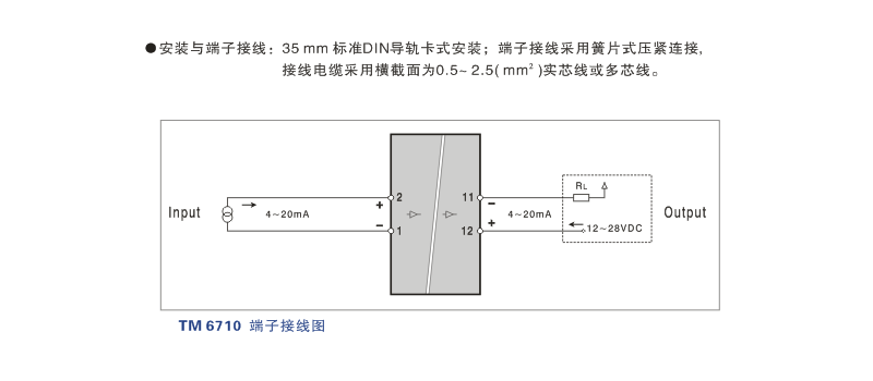 TM6710  直流電流輸入二線制隔離器端子接線圖