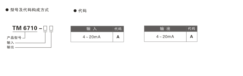TM6710  直流電流輸入二線制隔離器選型、訂貨代碼