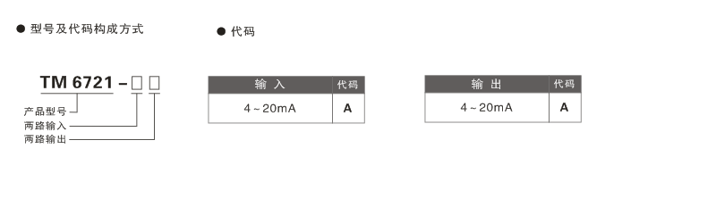 TM6721 直流電流輸入二線制隔離器 選型、訂貨代碼
