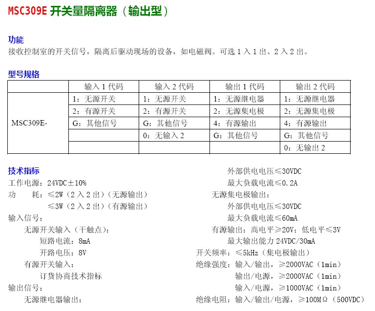 MSC309E-G1,MSC309E-G2,MSC309E-GG,MSC309E-G0,開(kāi)關(guān)量隔離器(輸出型)
