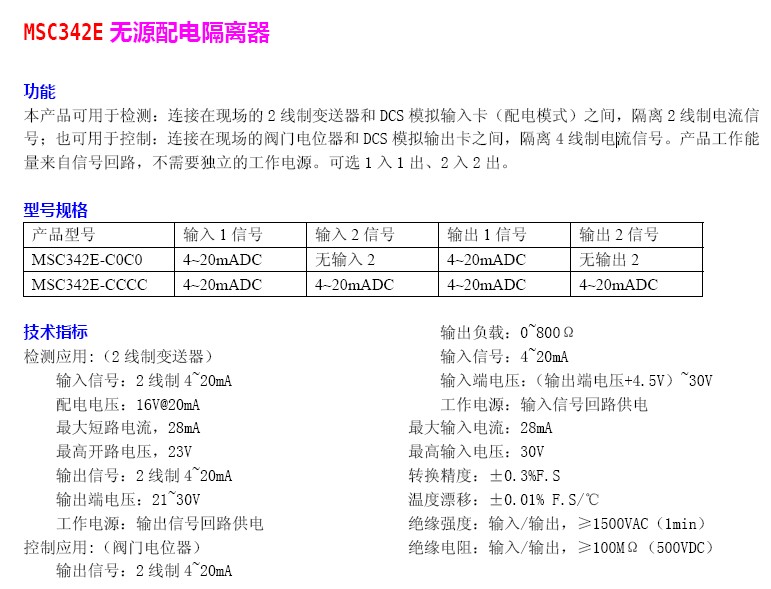 MSC342E,MSC342E-C0C0,MSC342E-CCCC,無(wú)源配電隔離器