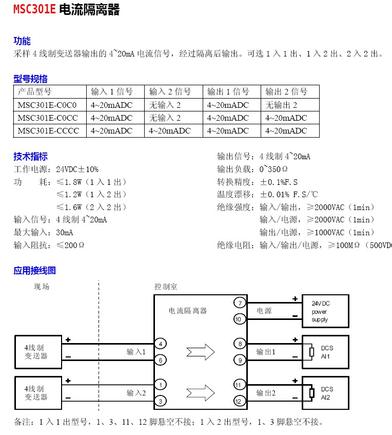 MSC301E,MSC301E-C0C0,MSC301E-C0CC,MSC301E-CCCC,電流隔離器