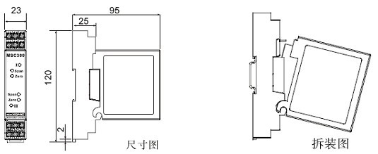 35mm導(dǎo)軌卡裝;主機(jī)與底座可以插拔分離 120mm*95mm*23mm