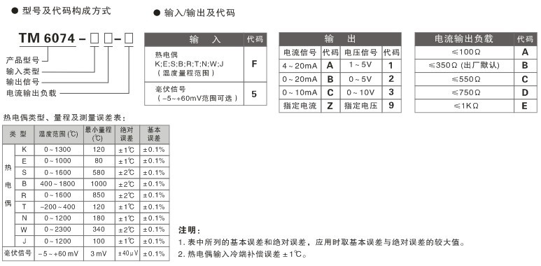 TM6074 熱電偶輸入溫度變送器 一入一出特性