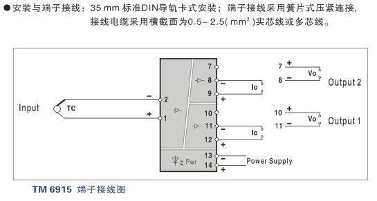 TM6915 熱電偶輸入, 智能溫度變送器 一入二出特性
