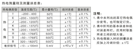 標(biāo)準(zhǔn)精度:±0.1%(參見熱電偶量程及測(cè)量誤差表)